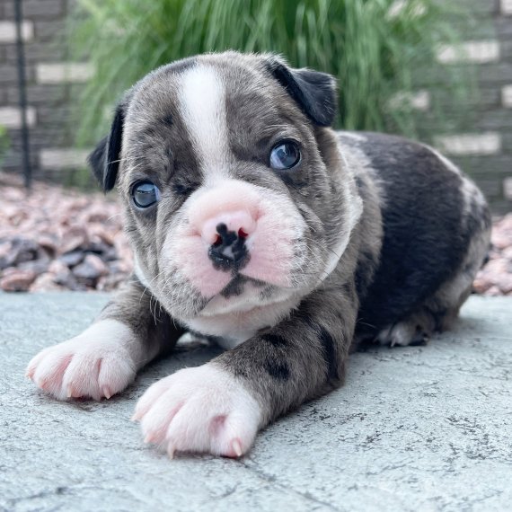 Yes, those adorable photos are of me! I’m a gorgeous Blue Merle & White Boston Terrier! You probably already think I’m the pick of the litter, and you’re not wrong! But can I please, please be your pick? I’d be happiest in your home where you make me all yours! My personality and cuteness outshine all of the rest, so don’t let someone else scoop me up. I’m patiently waiting to hear you’ve chosen me!
